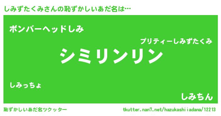 | 意味不明あだ名 | 『とにかく怪しいしみずたくみ』 |