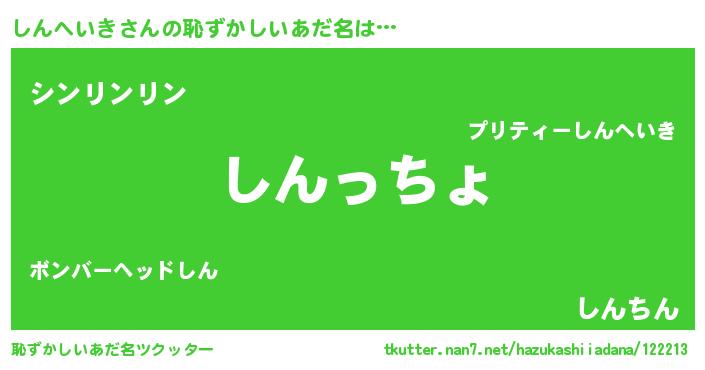 | ヘコむあだ名 | 『なまこ酢』『しんを』『しんにゅー』 |