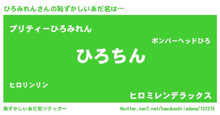 | ヘコむあだ名 | 『ひろみれん(小並感)』『ひろっふぃ~』 |