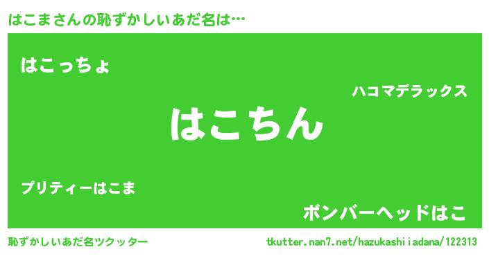 | ヘコむあだ名 | 『はこま(小並感)』『なまこ酢』 |