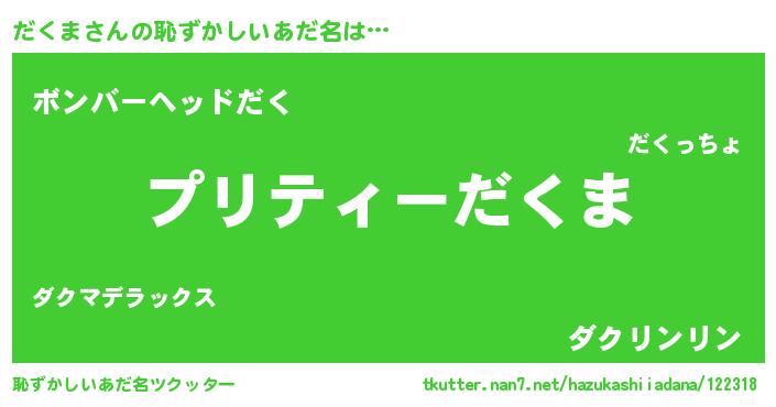| 胡散臭い通販商品みたいなあだ名 | 『億万長者になれる水晶球…その名も「だくま」』 |