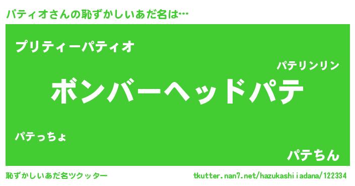 | ヒーロー風カッコイイあだ名 | 『正義の使者パティオ』『ネオパティオ』 |