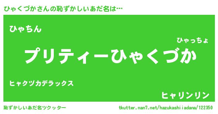 | 意味不明あだ名 | 『住所不定無職ひゃくづか(12歳)』 |