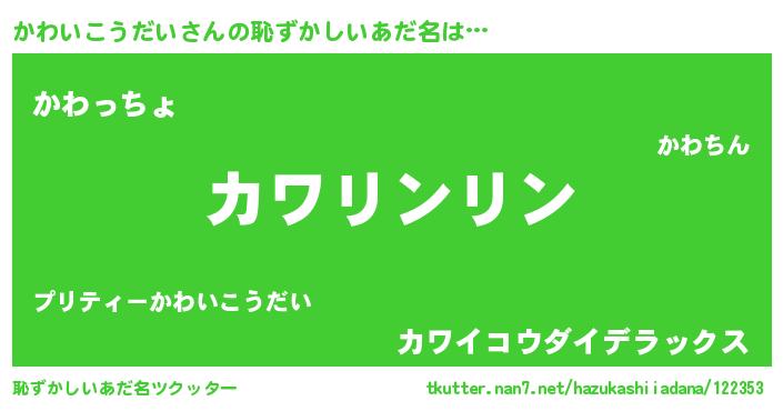 | 意味不明あだ名 | 『とにかく怪しいかわいこうだい』 |