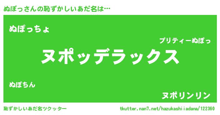 | 男性向けラノベタイトル風あだ名 | 『ヌポッスレイヤー』『魔弾の王とぬぽっ』 |