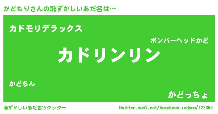 | 男性向けラノベタイトル風あだ名 | 『かどもりの嫁は女の子じゃないと思った?』 |