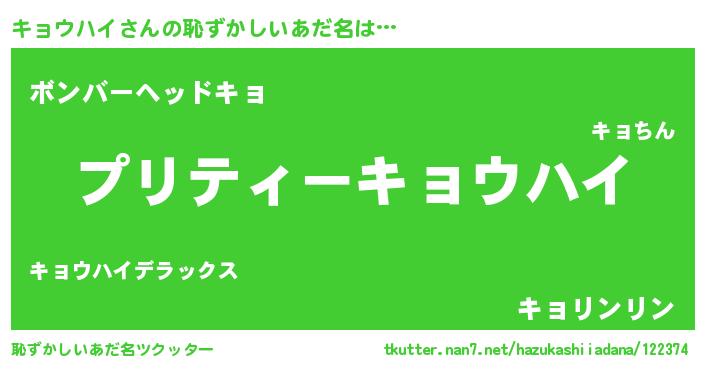 | ヒーロー風カッコイイあだ名 | 『スーパーキョウハイ』『仮面キョダー』 |