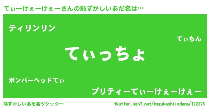 | 意味不明あだ名 | 『てぃーけぇーけぇーフォーエバー』 |