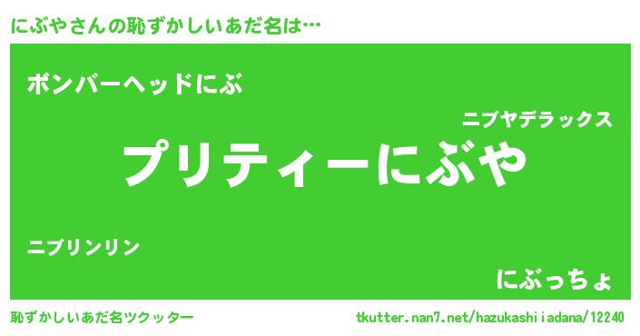 | ヘコむあだ名 | 『にぶにー』『レバニラ』『にぶ太郎』 |