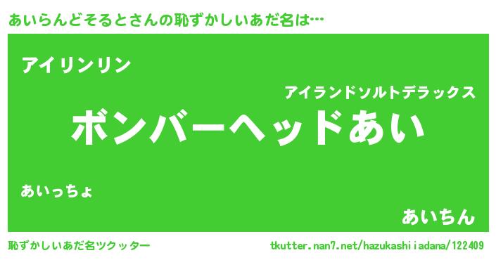 | ヘコむあだ名 | 『あいを』『あいらんどそると(苦笑)』 |