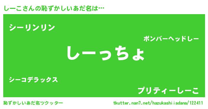 | 意味不明あだ名 | 『しーこフォーエバー』『ペロリンしーこ』 |