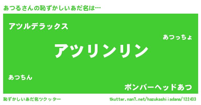 | 意味不明あだ名 | 『住所不定無職あつる(3歳)』『自称あつる』 |