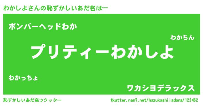 | 男性向けラノベタイトル風あだ名 | 『ワカシヨアートオンライン』 |