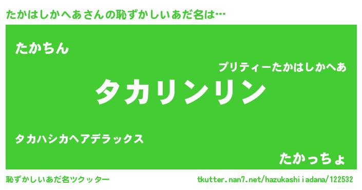 | ヘコむあだ名 | 『たかっ子』『たかはしかへあ(震え声)』 |