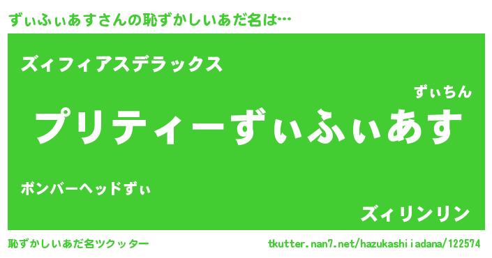 | 女子向けラノベタイトル風あだ名 | 『ずぃふぃあす姫と円卓の騎士』 |