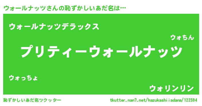| 女子向けラノベタイトル風あだ名 | 『(仮)ウォールナッツのやんごとなき事情』 |