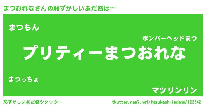 | ヘコむあだ名 | 『まつにゅー』『まつおれな(笑)』 |