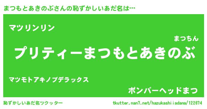 | ポケモン風あだ名 | 『マツチュウ』『ヒマツモトアキノブ』 |