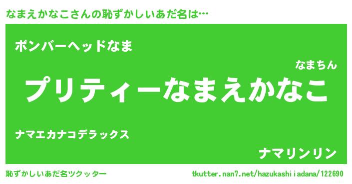 | ヒーロー風カッコイイあだ名 | 『スーパーナマエカナコ』『黄金騎士ナマ』 |