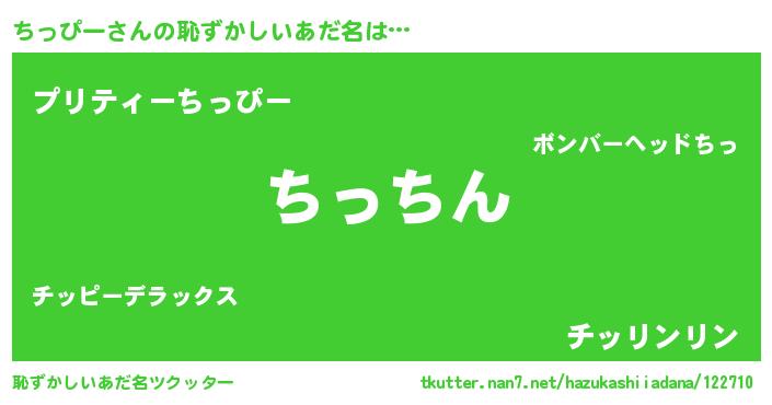 | 胡散臭い通販商品みたいなあだ名 | 『絶対に幸福をもたらす健康食品…その名も「ちっぴー」』 |