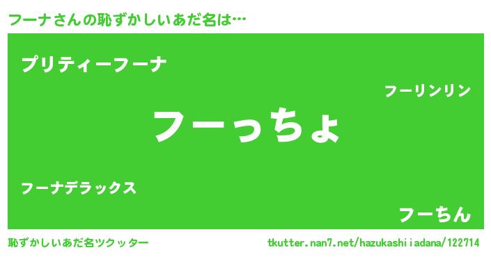 | ポケモン風あだ名 | 『フーナダネ』『フーチュウ』 |