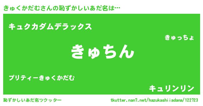 | ヘコむあだ名 | 『きゅくかだむ(笑)』『きゅを』 |
