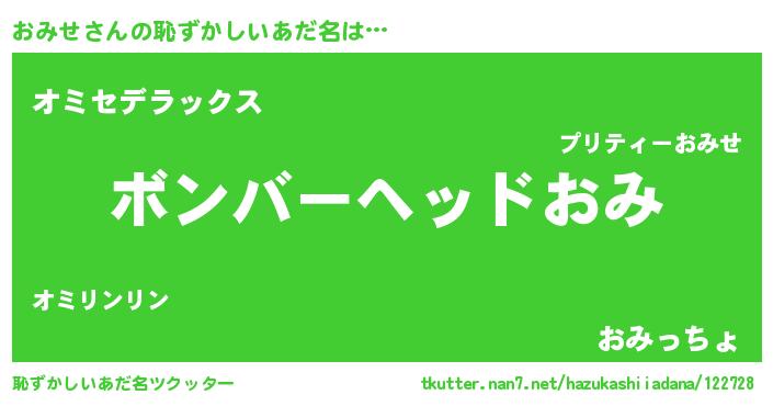 | ヒーロー風カッコイイあだ名 | 『正義の使者おみせ』『究極戦士オミセ』 |