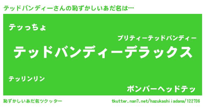 | 女子向けラノベタイトル風あだ名 | 『テッドバンディーの玉の輿計画!』 |