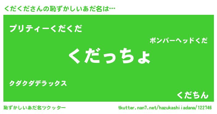 | 2回繰り返すあだ名 | 『くくだだ』『くだくだ』『わんわん』 |