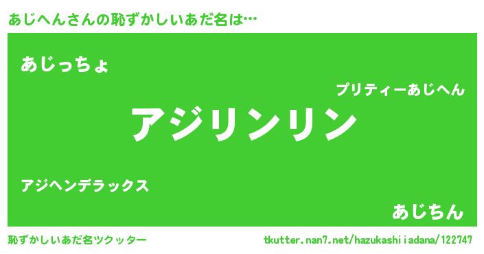 | 意味不明あだ名 | 『とにかく怪しいあじへん』 |