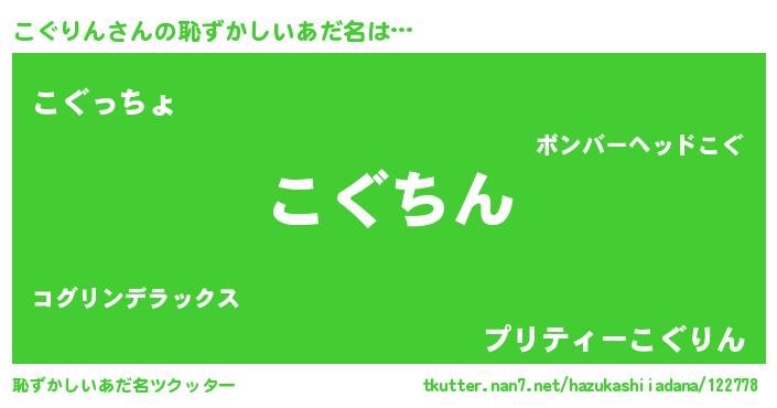 | ヒーロー風カッコイイあだ名 | 『ネオコグリン』『ウルトラこぐりんマン』 |