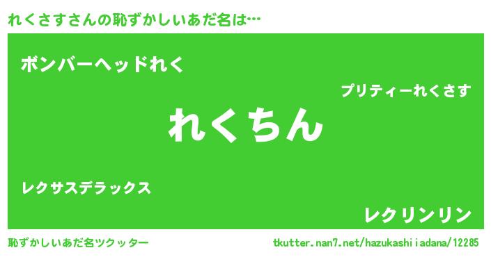 | ヘコむあだ名 | 『れくさす(小並感)』『れくっ子』 |