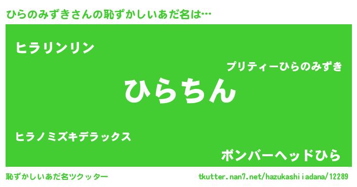 | ヘコむあだ名 | 『ひらのみずき(笑)』『ひらっ子』 |