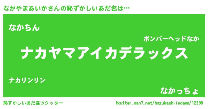 | ヘコむあだ名 | 『なかやまあいか(苦笑)』『なまこ酢』 |