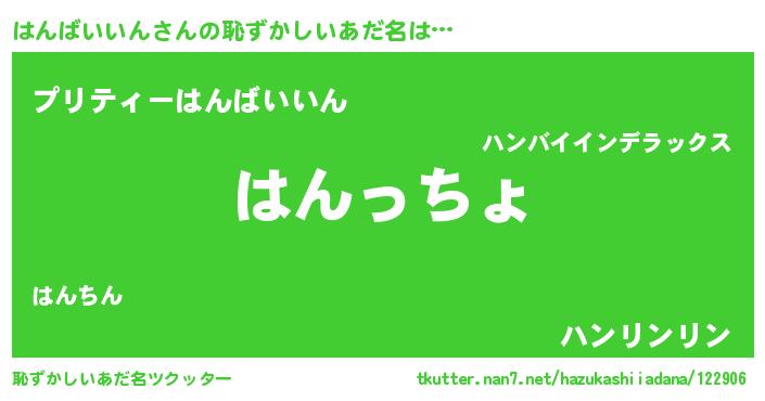 | ポケモン風あだ名 | 『ハンバダネ』『ハンチュウ』 |