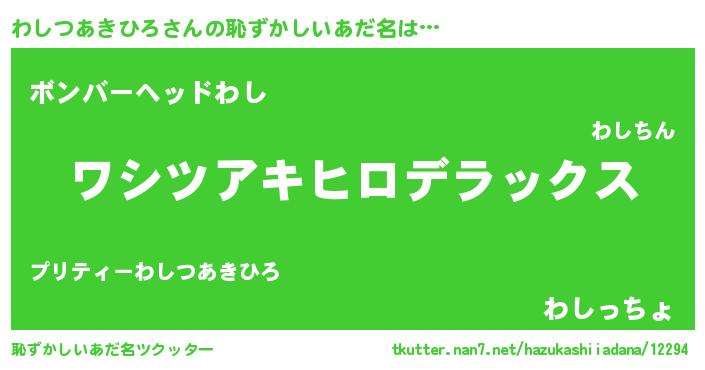 | 意味不明あだ名 | 『自称わしつあきひろ』 |