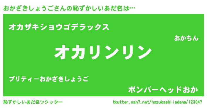 | 男性向けラノベタイトル風あだ名 | 『この素晴らしい世界におかざきしょうごを!』 |