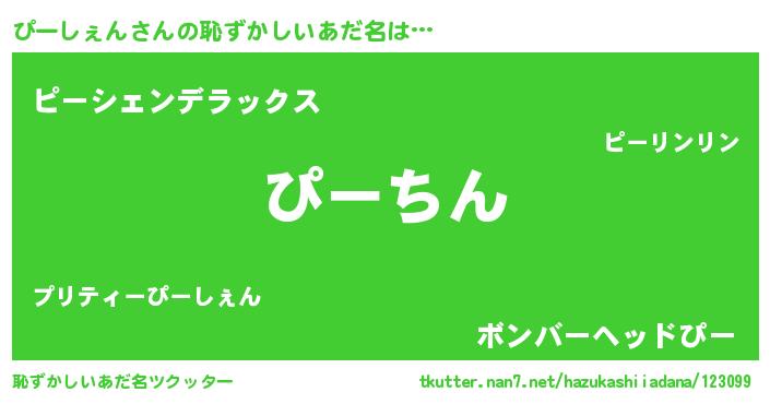 | 意味不明あだ名 | 『永久保存ぴーしぇん』『自称ぴーしぇん』 |