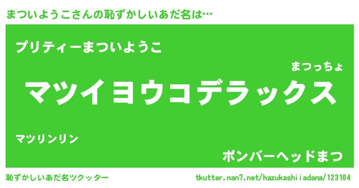 | ヒーロー風カッコイイあだ名 | 『仮面マツダー』『スーパーマツイヨウコ』 |