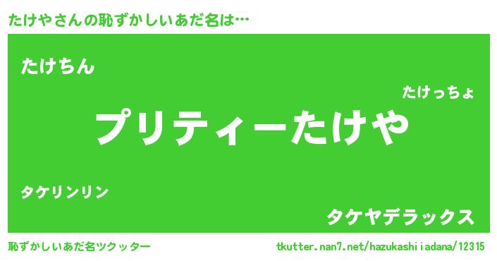 | ヘコむあだ名 | 『たけにー』『たけや(小並感)』 |