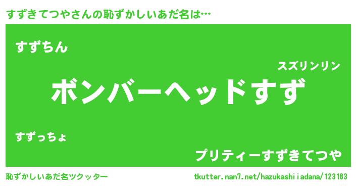 | ヘコむあだ名 | 『すずきてつや(笑)』『すずにゅー』 |