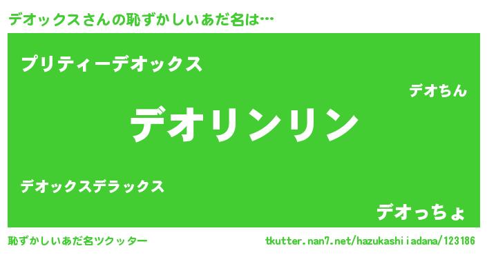 | 意味不明あだ名 | 『とにかく怪しいデオックス』 |