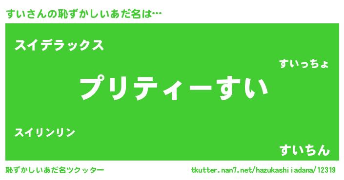 | ヘコむあだ名 | 『すいにー』『すい(爆)』『酢こんぶ』 |