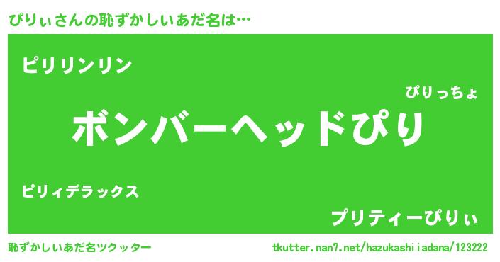 | ヒーロー風カッコイイあだ名 | 『慈愛の使者ぴりぃ』『仮面ピリダー』 |
