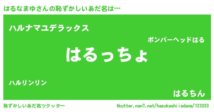 | 意味不明あだ名 | 『はるなまゆフォーエバー』 |