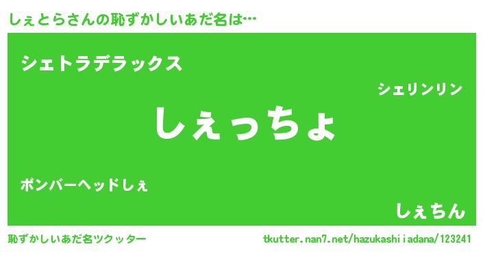 | 意味不明あだ名 | 『しぇとらフォーエバー』『自称しぇとら』 |