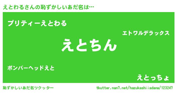 | 意味不明あだ名 | 『永久保存えとわる』『ペロリンえとわる』 |