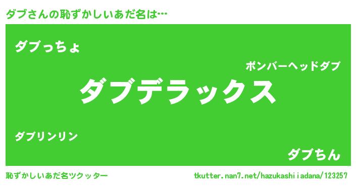 | ヘコむあだ名 | 『酢こんぶ』『ダブ(笑)』『ダブにー』 |