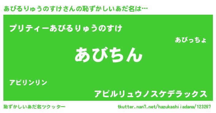 | 意味不明あだ名 | 『永久保存あびるりゅうのすけ』 |