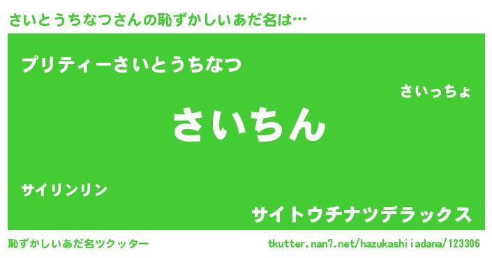 | ヘコむあだ名 | 『さいとうちなつ(笑)』『さいにゅー』 |